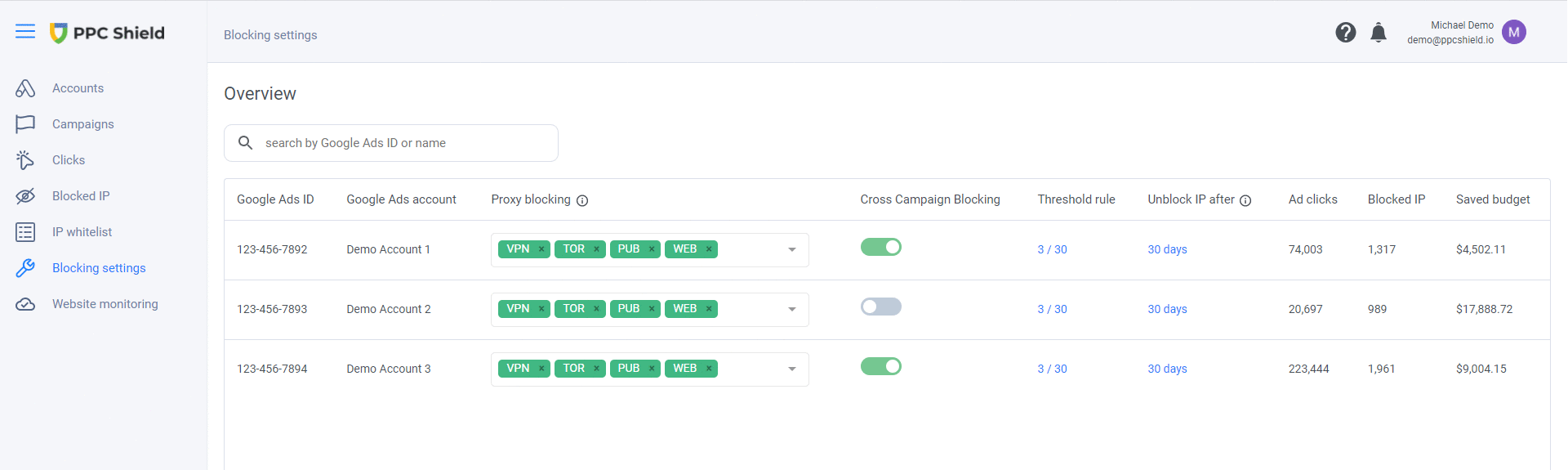 Do you have any blocking preferences? Blocking IPs across all campaigns or inside one campaign? Which VPNs to block? When to unblock suspicious IPs? Let us know in the settings.