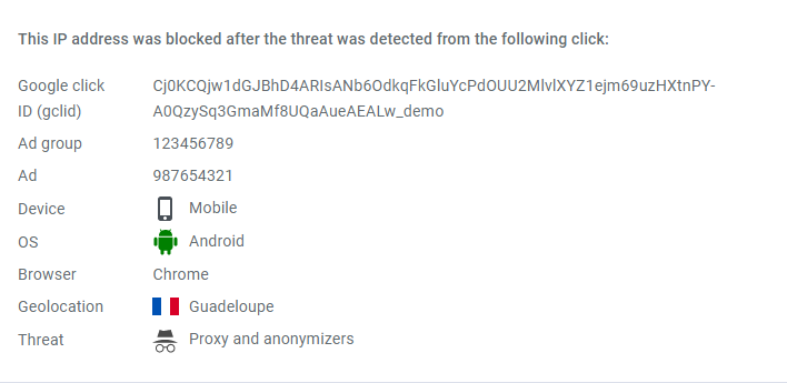 Once identified as a potential threat, suspicious IPs are blocked from seeing your ads again.